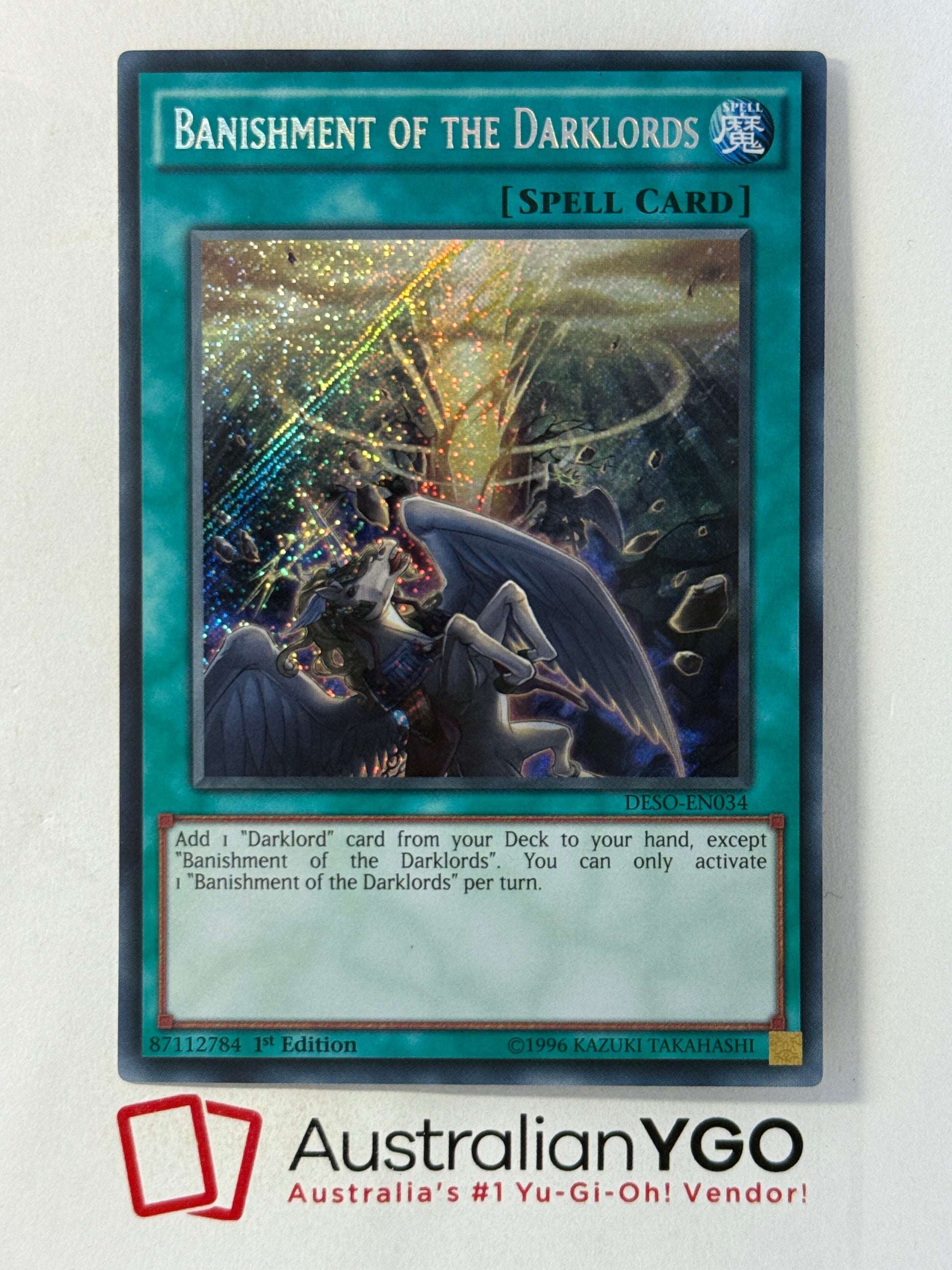 BANISHMENT OF THE DARKLORDS DESO-ENO34 Secret Rare, Near Mint, 1st Edition. Euro