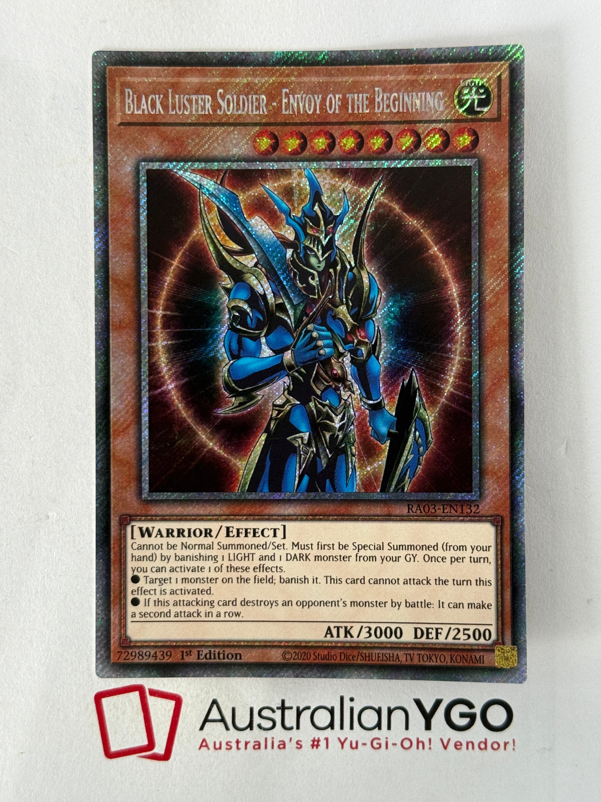 BLACK LUSTER SOLDIER - ENVOY OF THE BEGINNING RA03-EN132 Platinum Secret Rare, Near Mint, 1st Edition.