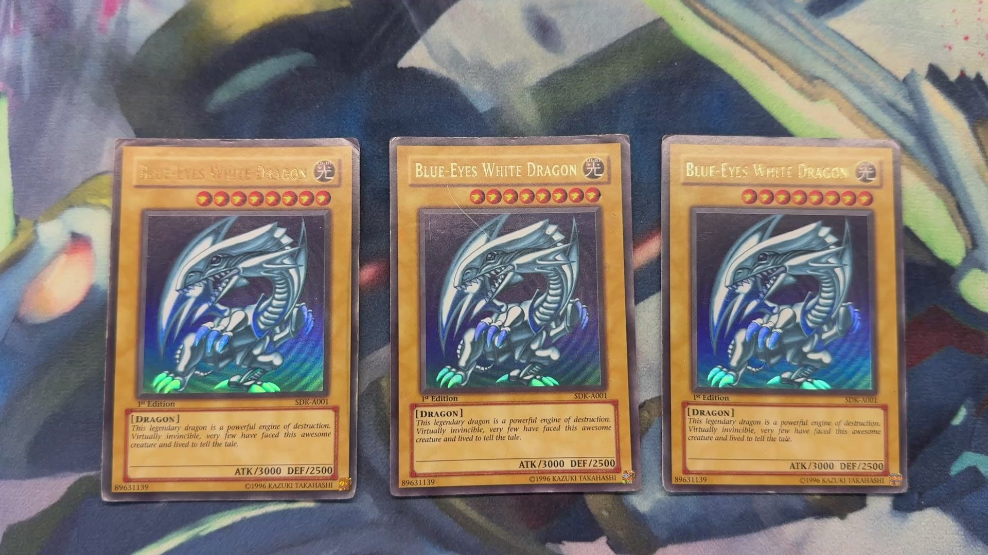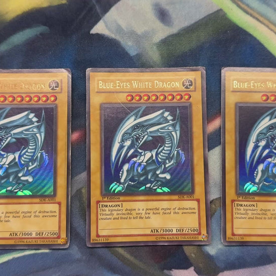 BLUE-EYES WHITE DRAGON SDK-A001 Playset Ultra Rare, Damaged, 1st Edition. Australian Print