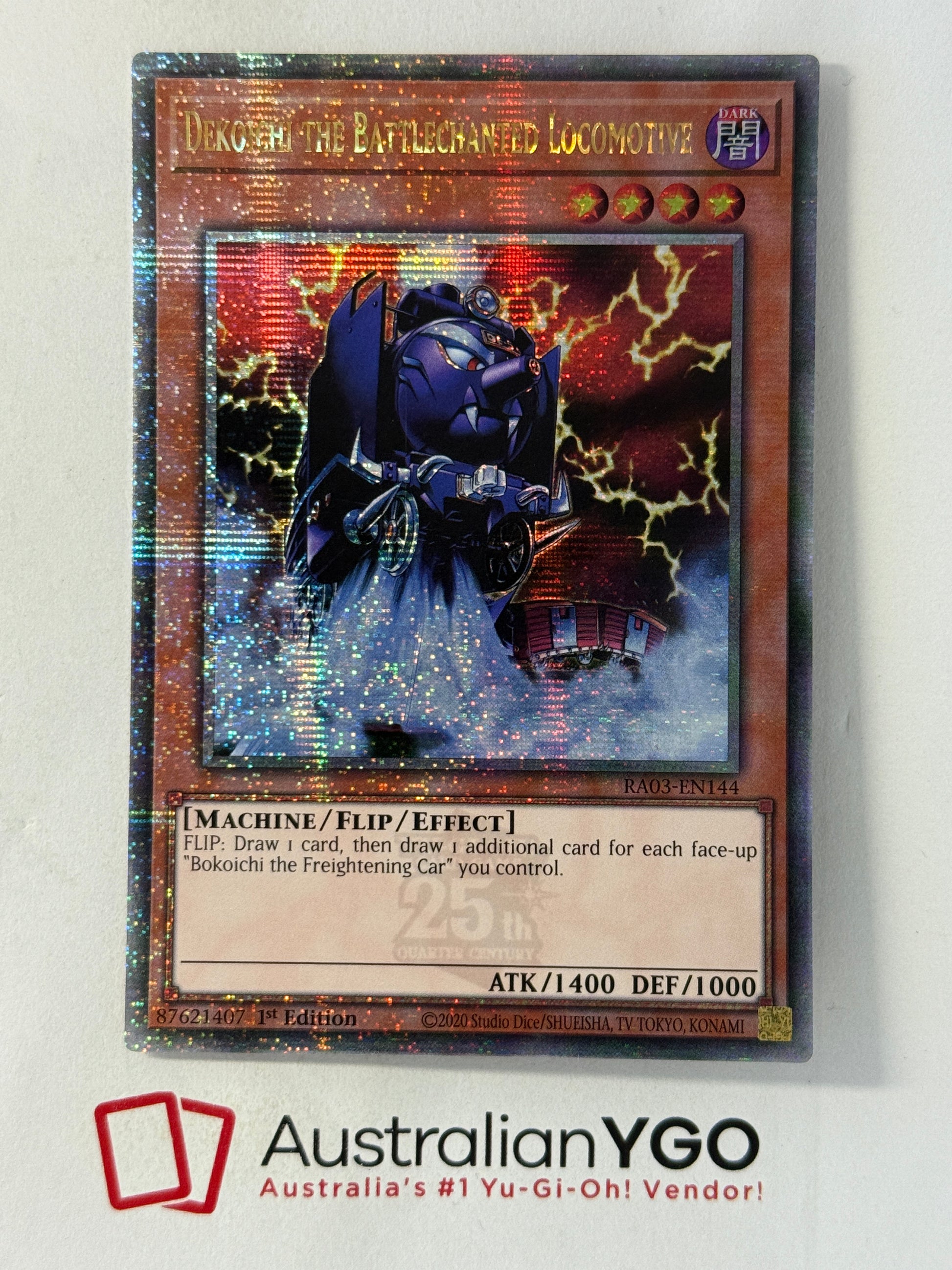 DEKOICHI THE BATTLECHANTED LOCOMOTIVE RA03-EN144 (QCR) Quarter Century Secret Rare, Near Mint, 1st Edition. Euro