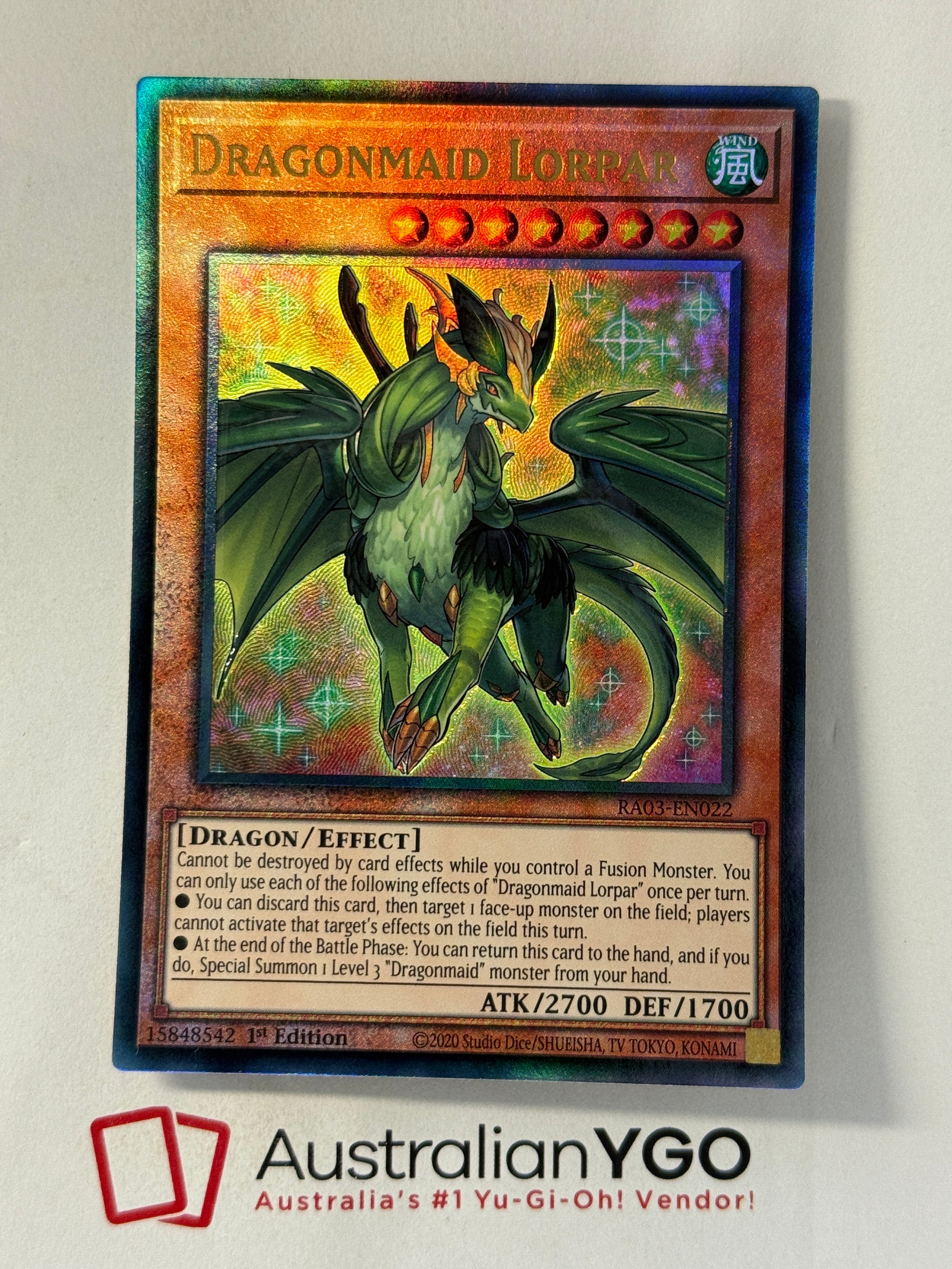 DRAGONMAID LORPA RA03-EN022 (PUR) Prismatic Ultimate Rare, Near Mint, 1st Edition. Euro