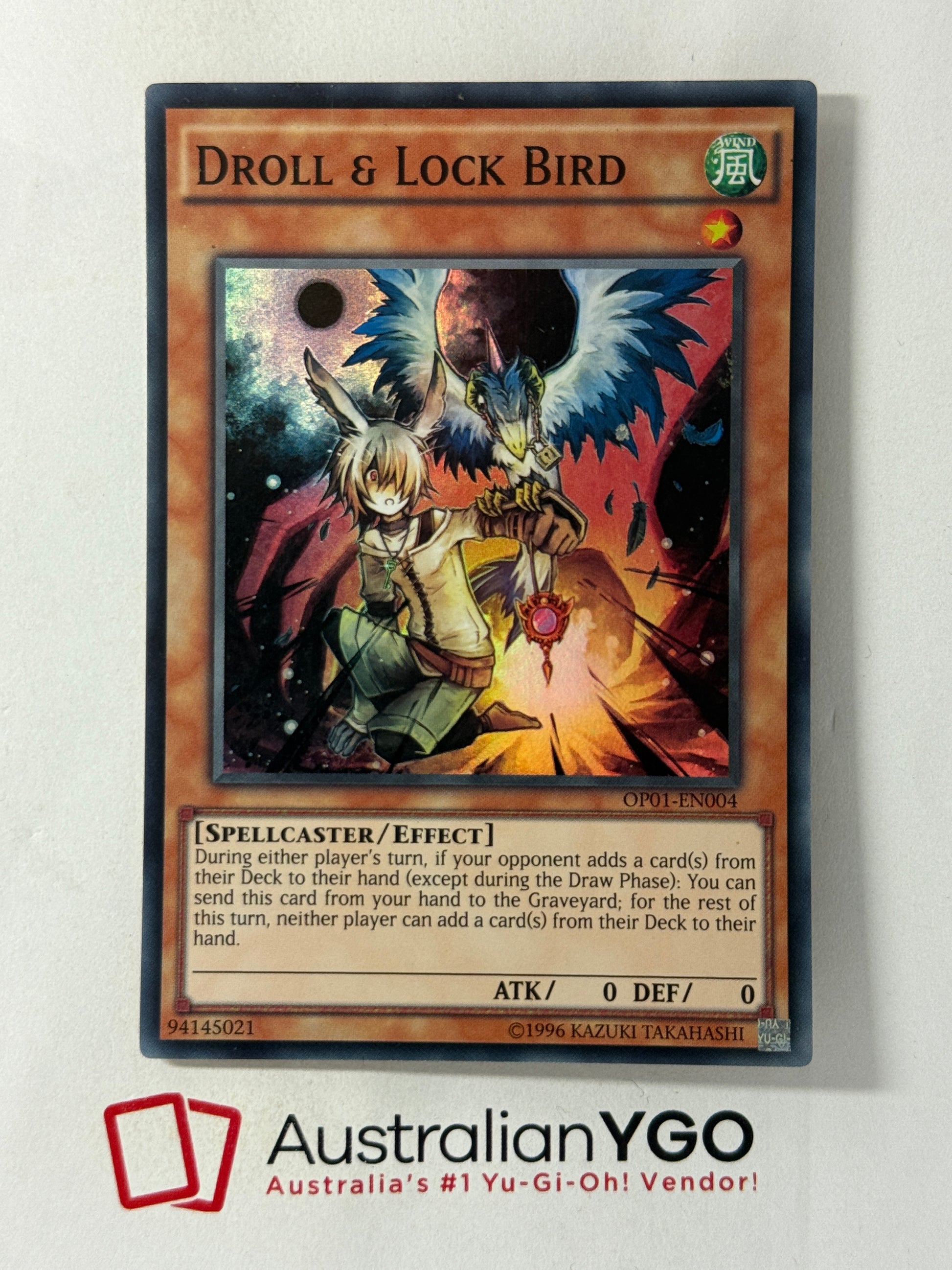 DROLL & LOCK BIRD OP01-EN004 Super Rare, Near Mint, Unlimited. Euro