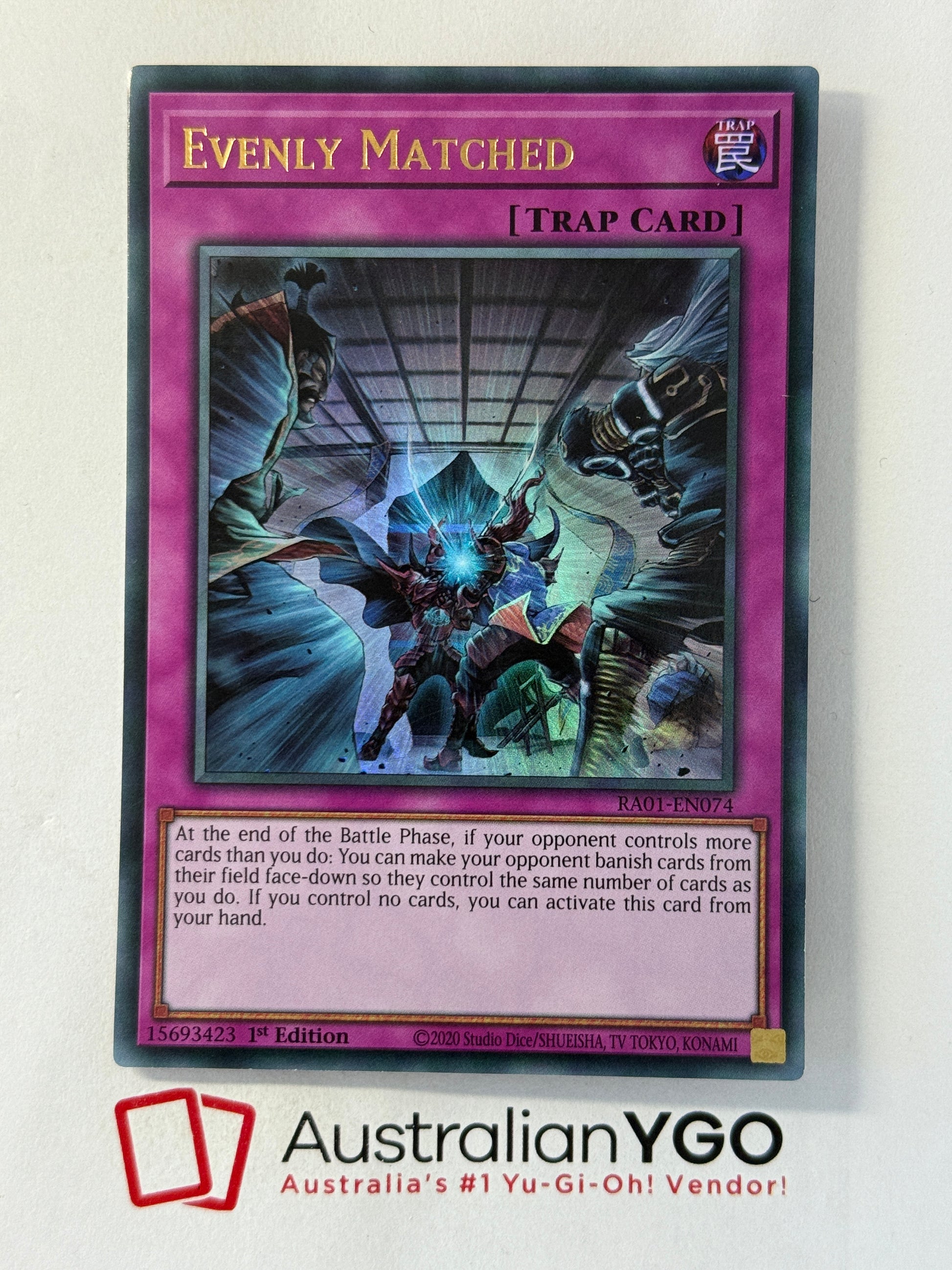 EVENLY MATCHED RA01-EN074 Ultra Rare, Near Mint, 1st Edition. Euro