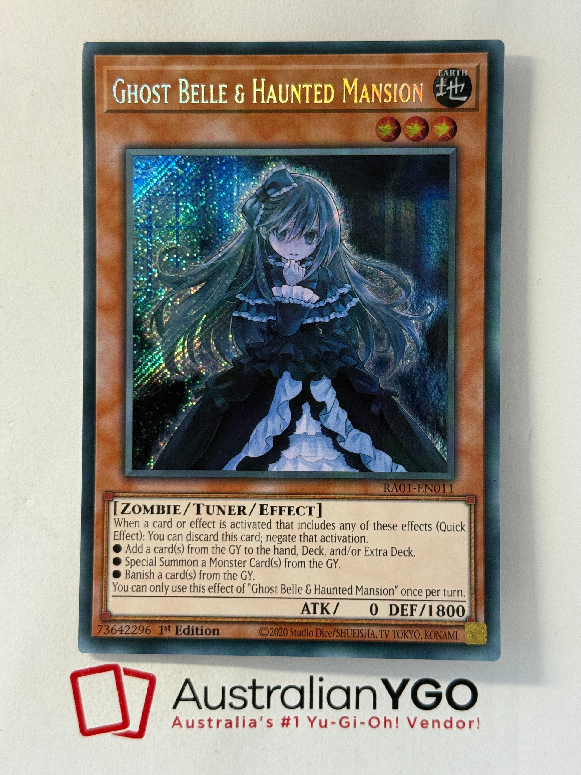 GHOST BELLE & HAUNTED MANSION RA01-EN011 Secret Rare, Near Mint, 1st Edition. Euro
