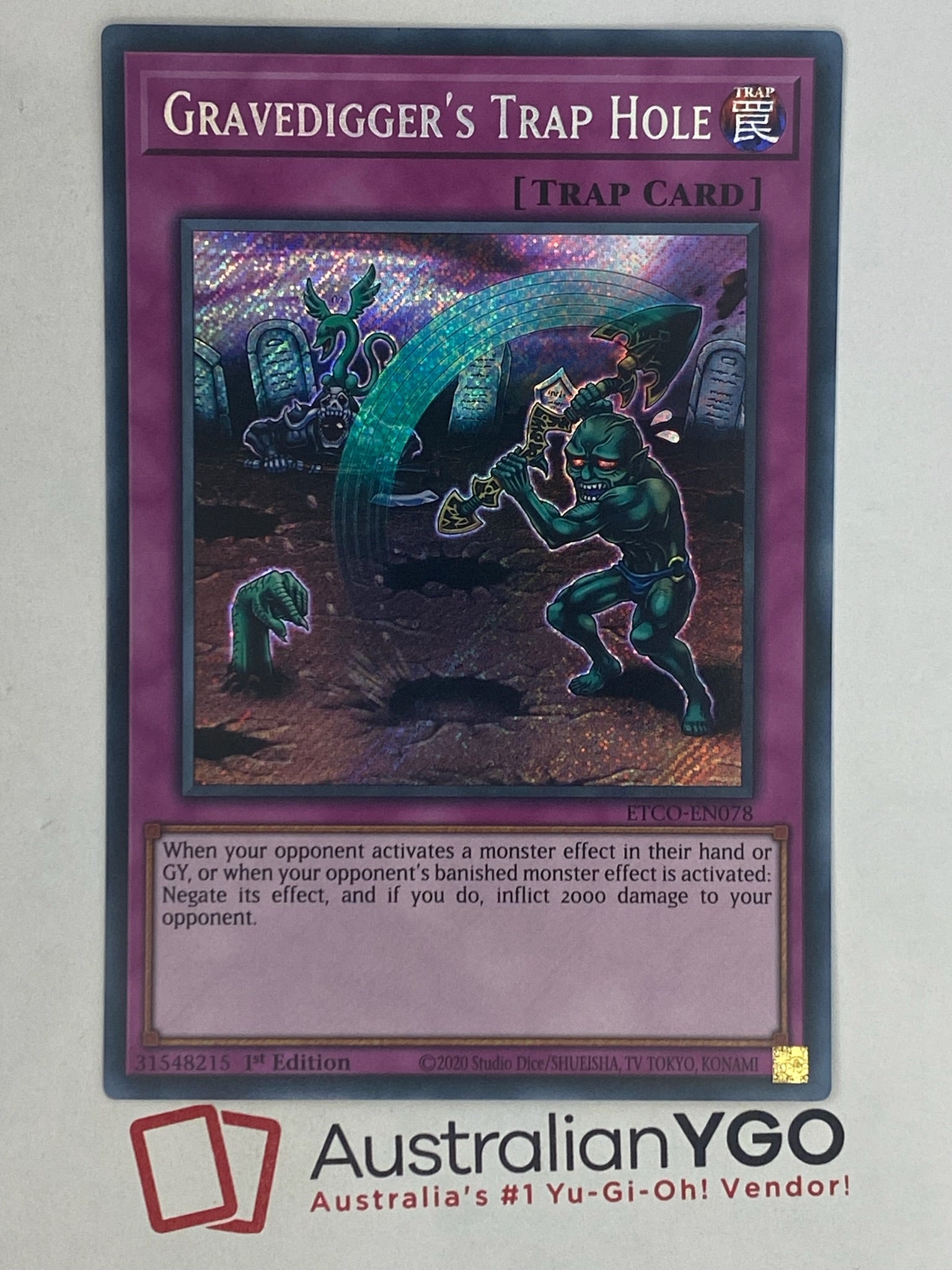 GRAVEDIGGER'S TRAP HOLE ETCO-EN078 Secret Rare, Near Mint, 1st Edition.