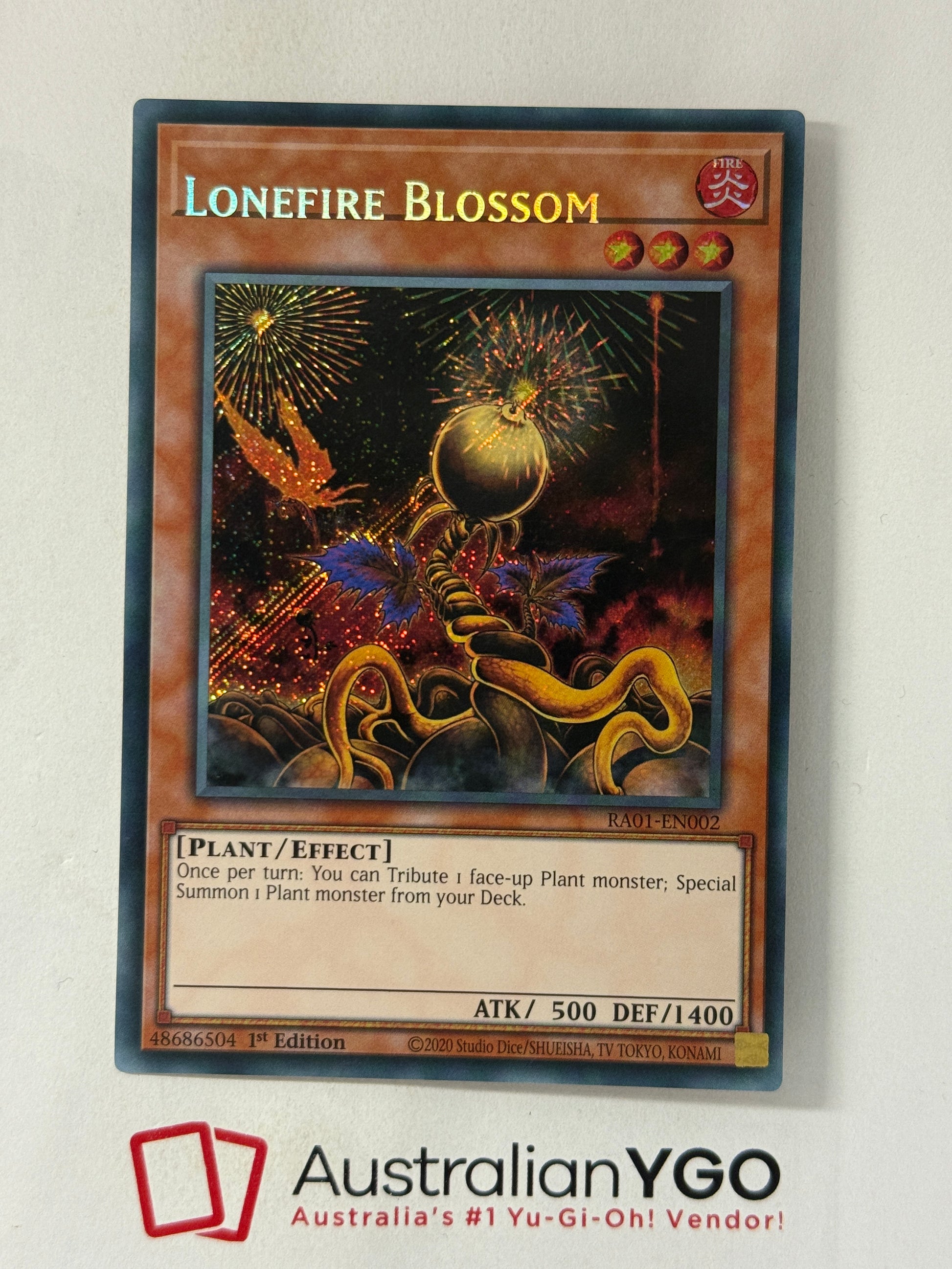 LONEFIRE BLOSSOM RA01-EN002 (MISPRINT) Secret Rare, Near Mint, 1st Edition.
