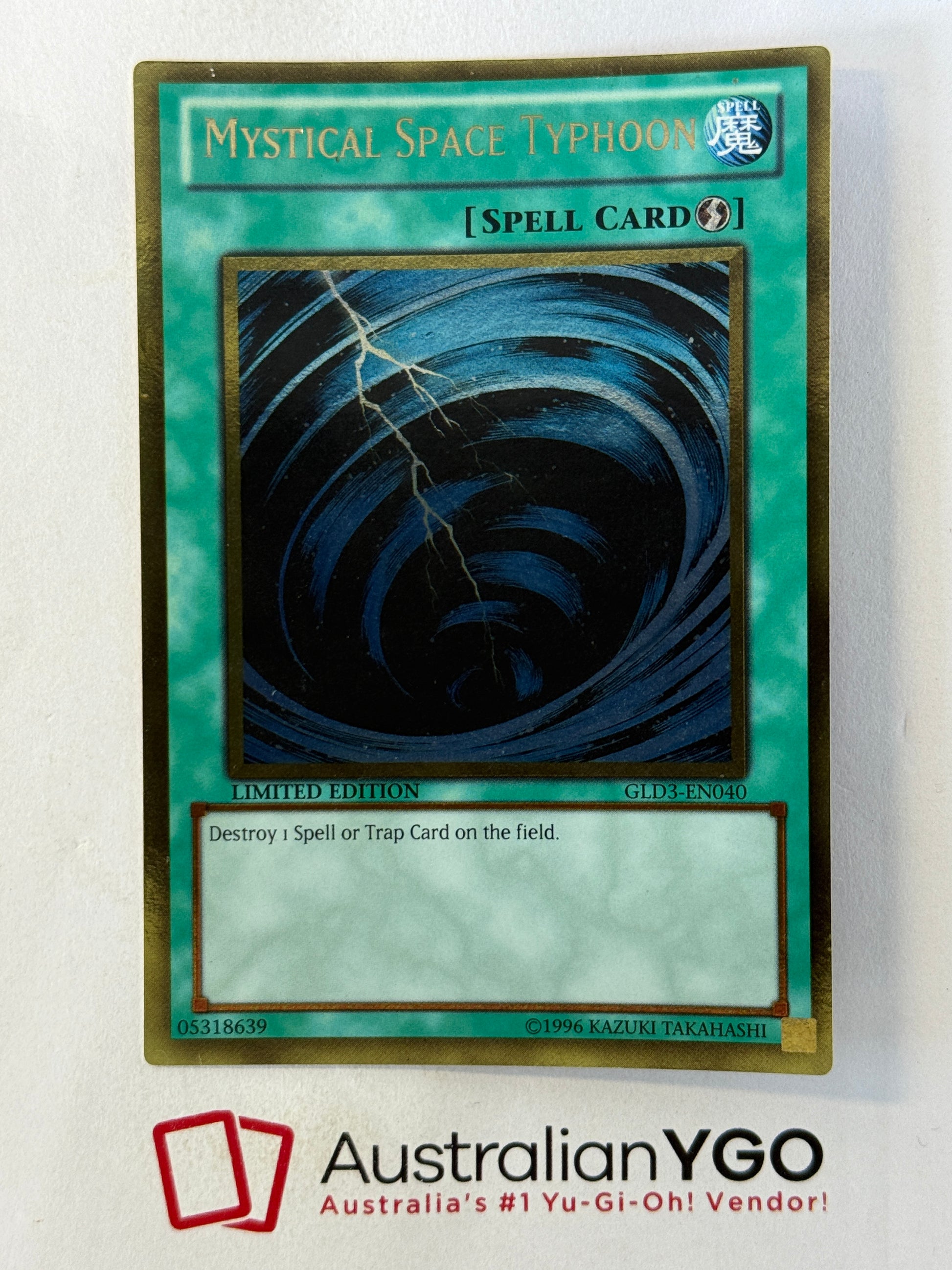 MYSTICAL SPACE TYPHOON GLD3-EN040 Gold Rare, Moderately Played, Limited Edition. Euro