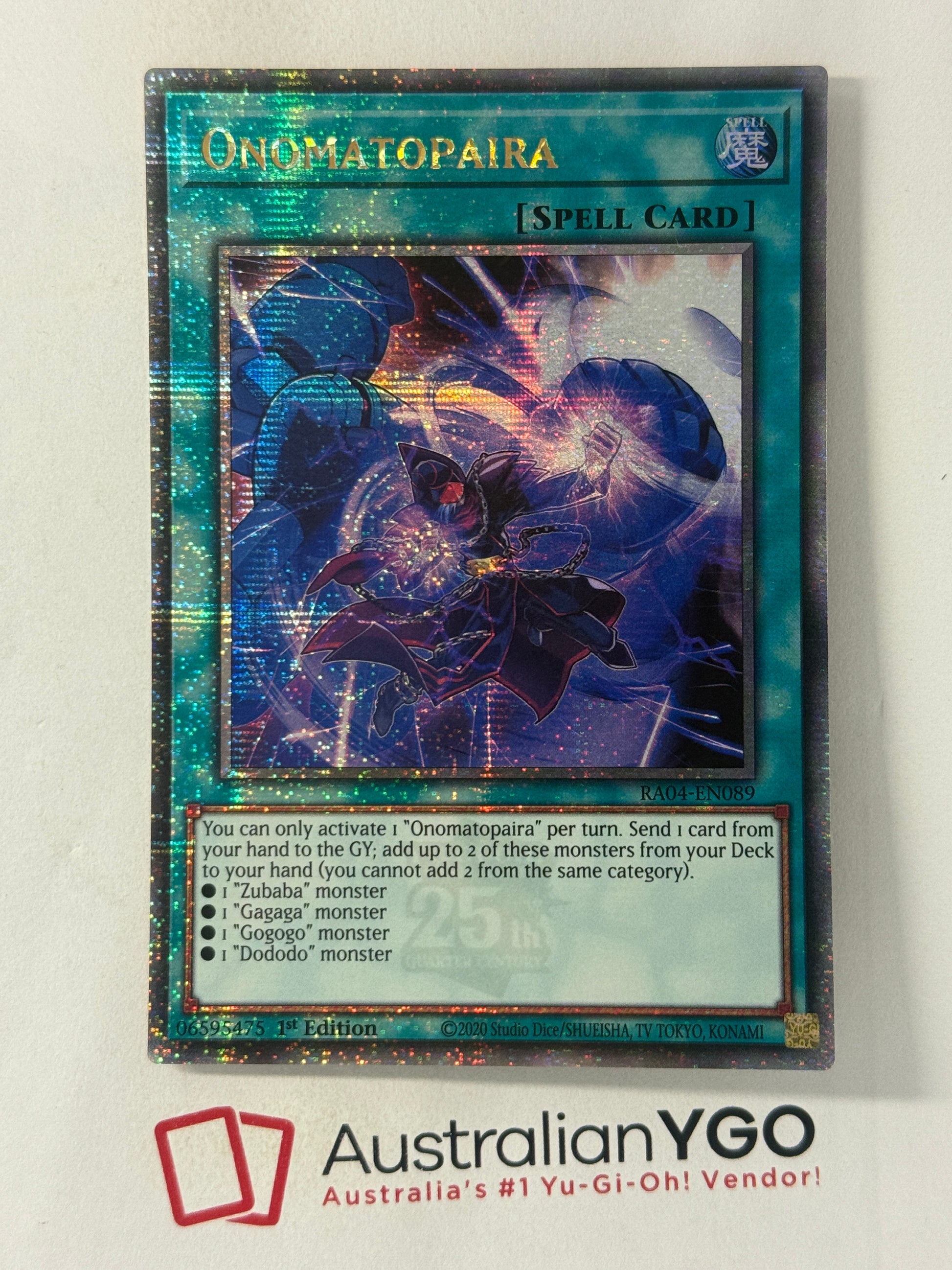ONOMATOPAIRA RA04-ENO89 (QCR) Quarter Century Secret Rare, Near Mint, 1st Edition. Euro