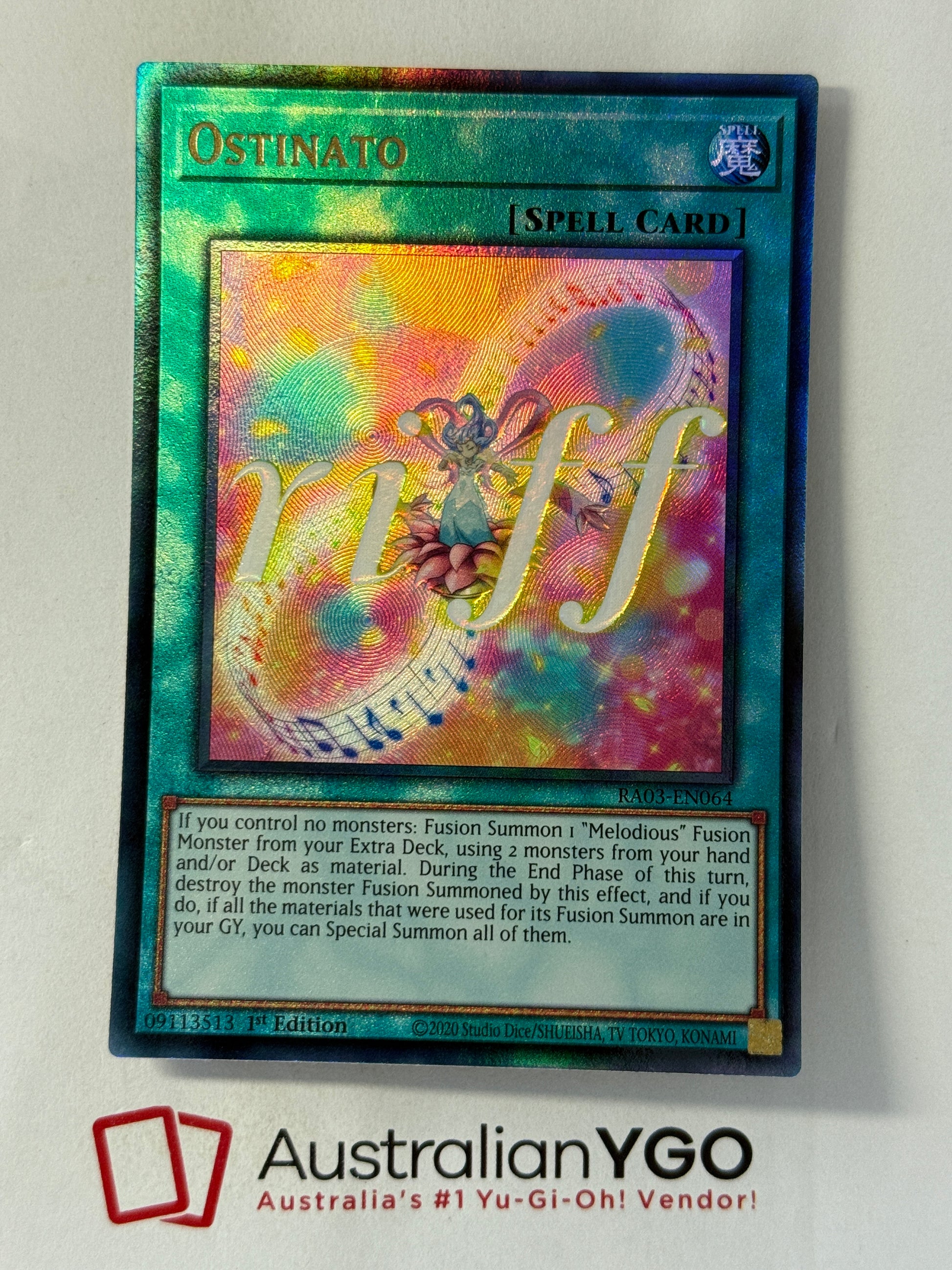 OSTINATO RA03-EN064 (PUR) Prismatic Ultimate Rare, Near Mint, 1st Edition. Euro