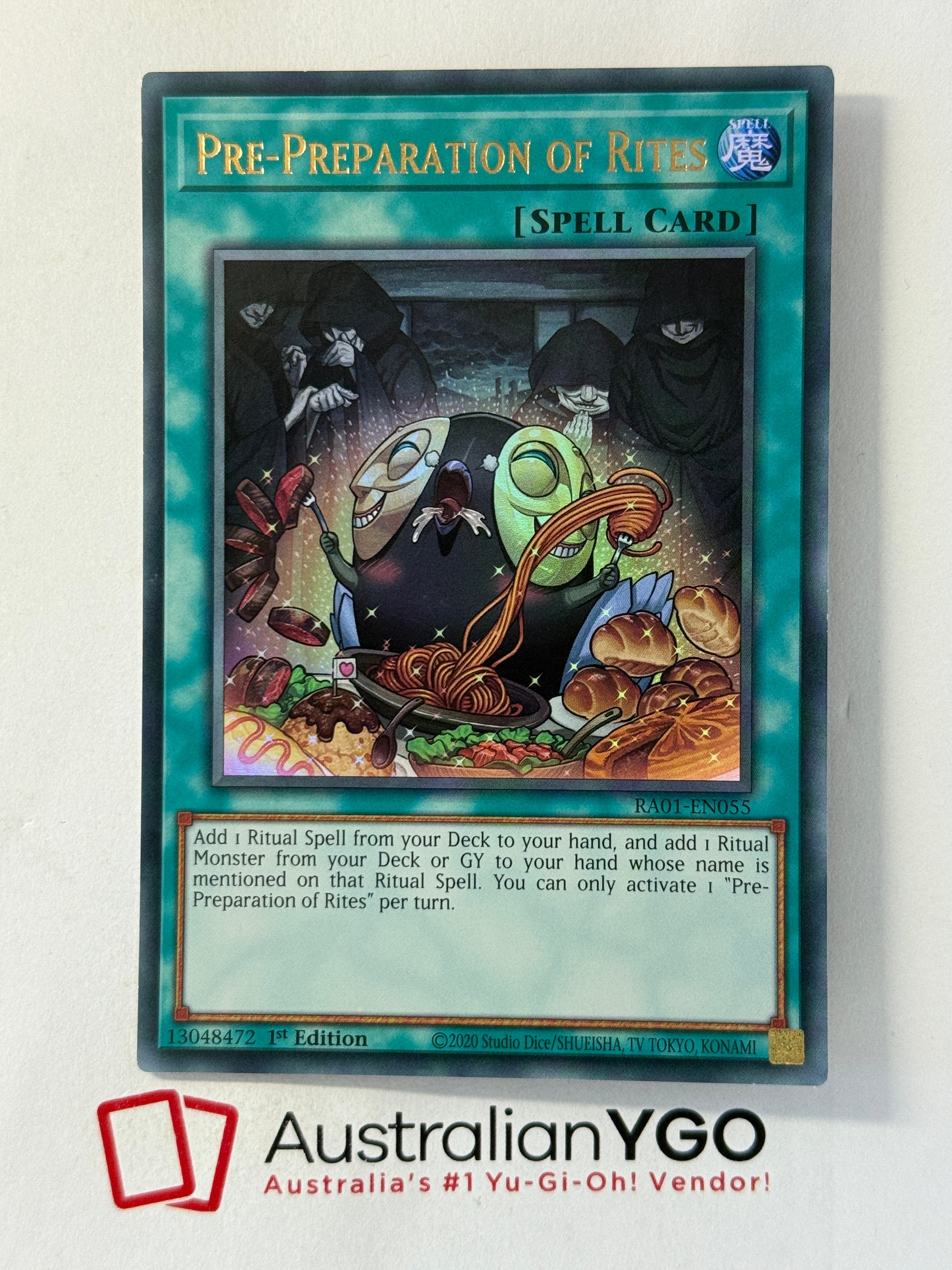 PRE-PREPARATION OF RITES RA01-EN055 Ultra Rare, Near Mint, 1st Edition. Euro