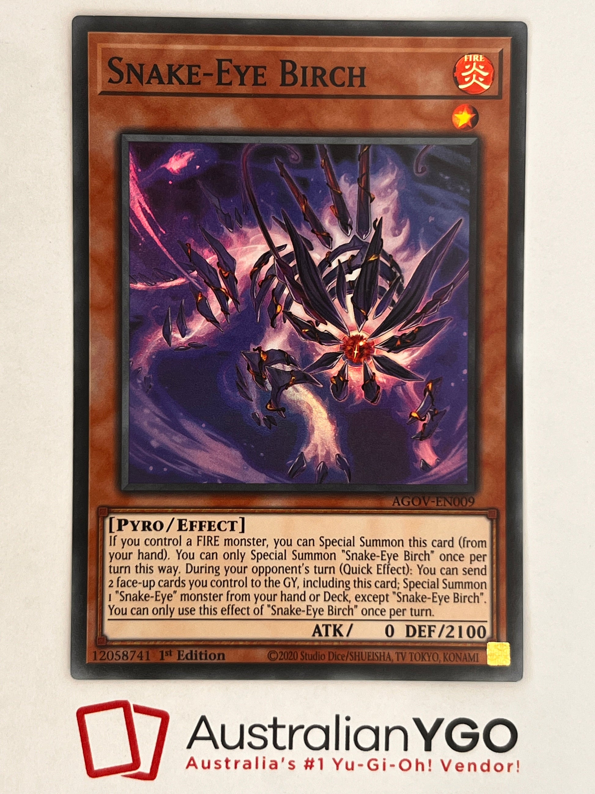 Snake-Eye Birch AGOV-EN009 Super Rare, Near Mint, 1st Edition.