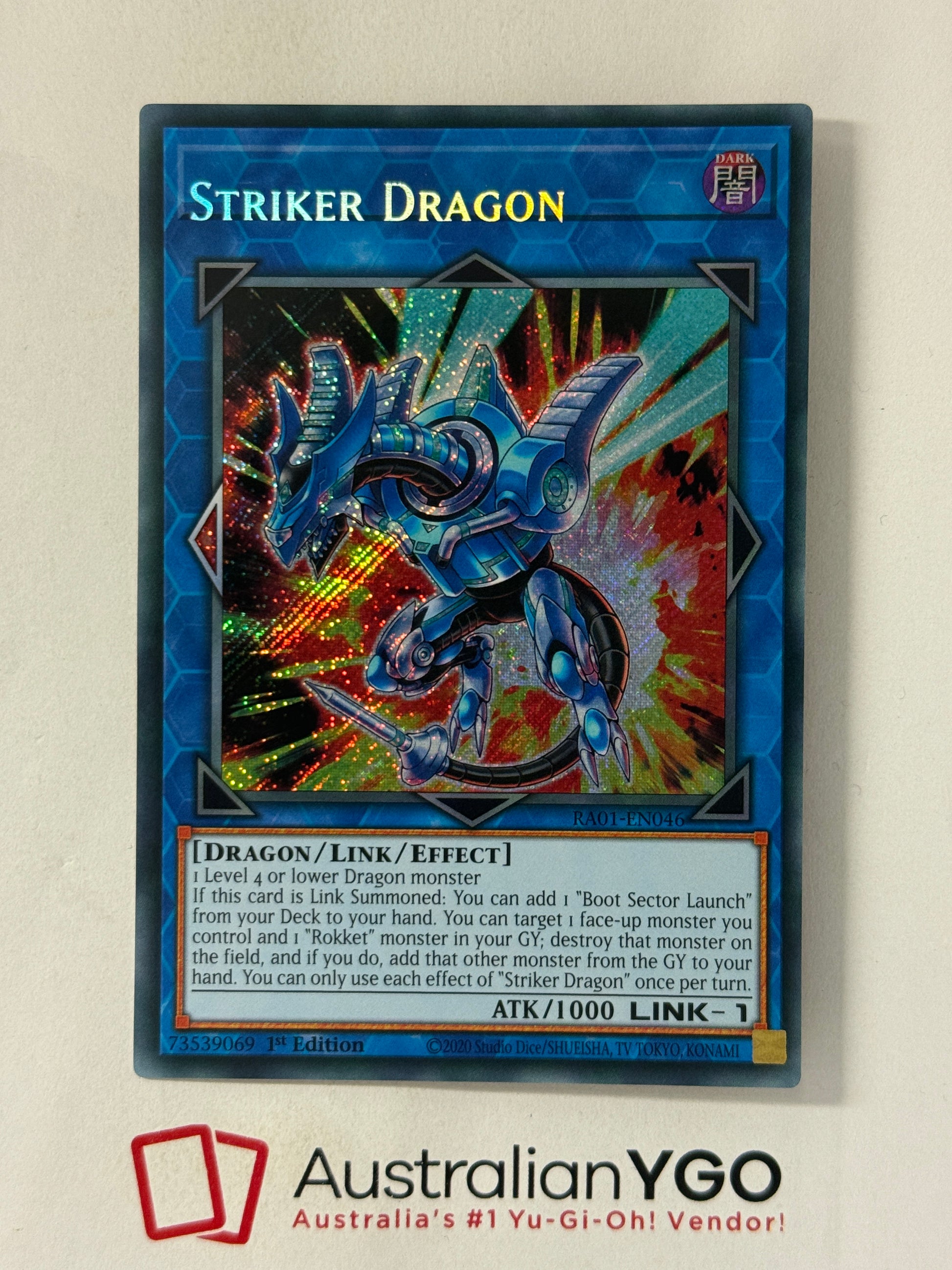STRIKER DRAGON RA01-EN046 (MISPRINT) Secret Rare, Near Mint, 1st Edition.